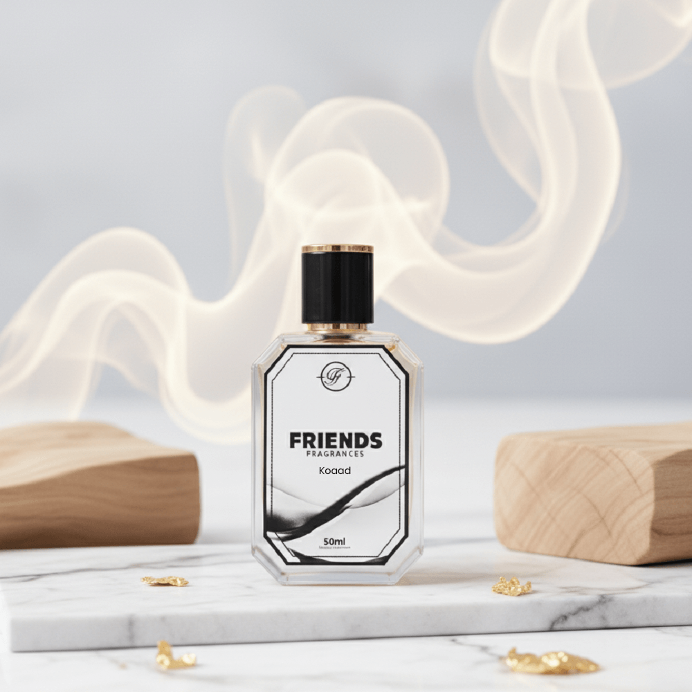 Unleash your inner strength with Koaad by Friend Fragrances. The fragrance opens with a lively burst of spice and citrus, immediately energizing and capturing attention. Its heart blends rich woody and aromatic notes, providing depth and sophistication. Finally, the base of musk and amber ensures a long-lasting, commanding presence.